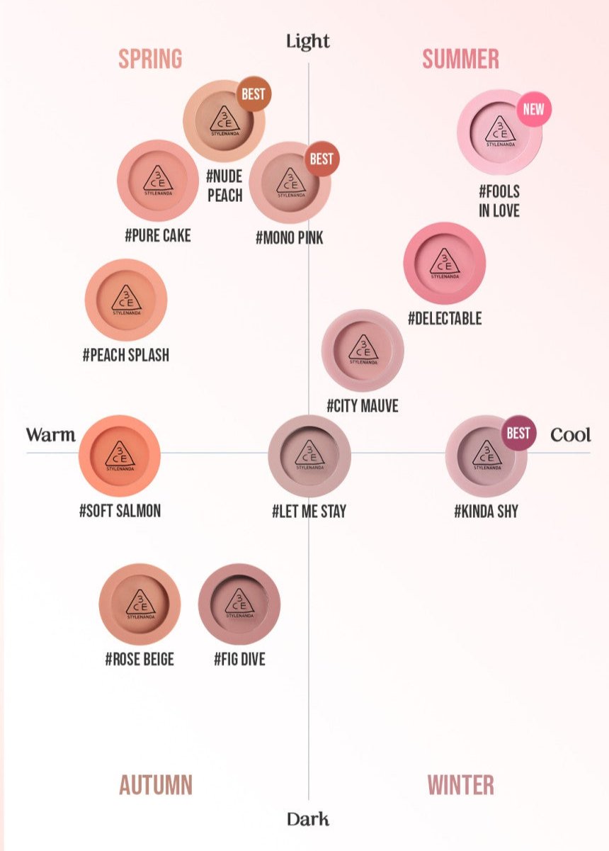 3CE’s cult-favorite powder blush absorbs sweat and excess sebum for a long-lasting cheek look with a soft-focus finish. The pigments glide on skin effortlessly and adheres well for easy application with minimal fallout. Choose from three versatile shades.